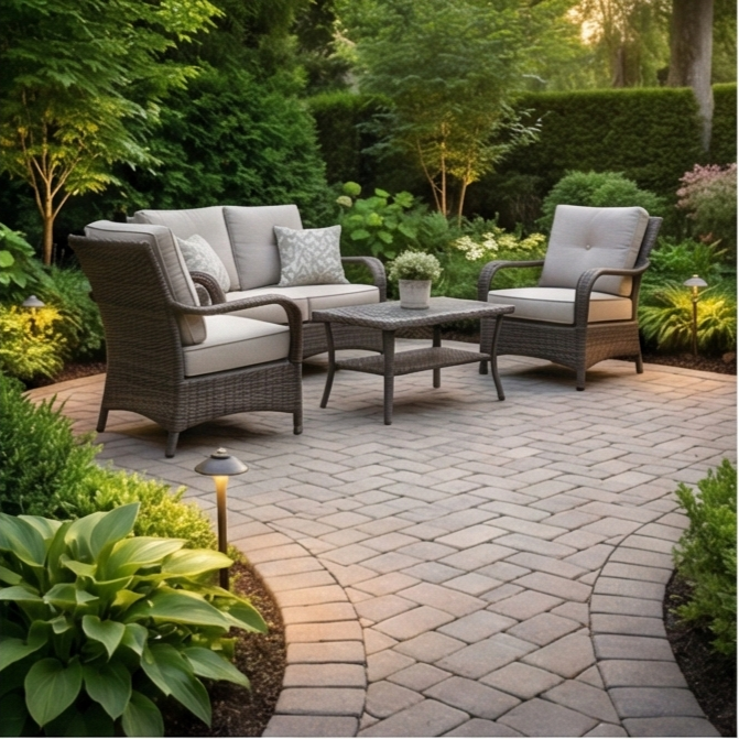 Transform your backyard with a custom interlocking brick patio designed for comfort, style, and low maintenance.